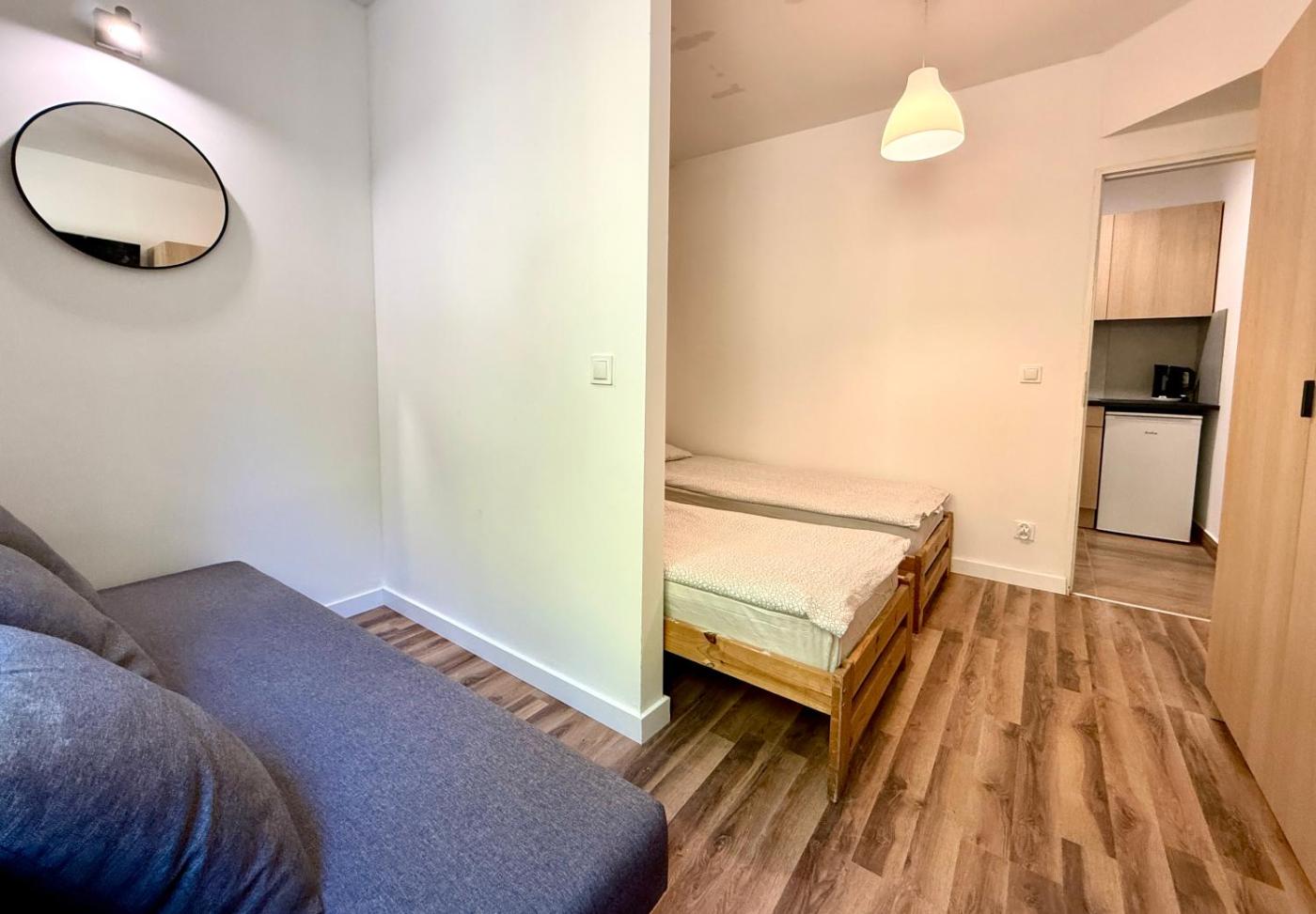 Studio. The studio provides a washing machine, a dining area, as well as a private bathroom featuring a shower. Guests can make meals in the kitchenette that is equipped with a stovetop, a refrigerator, kitchenware and an electric kettle. The studio features a wardrobe, parquet floors and heating. The unit offers 2 beds. Studio - 2 osobowy. Powierzchnia pokoju ok.: 20 mkw. ;