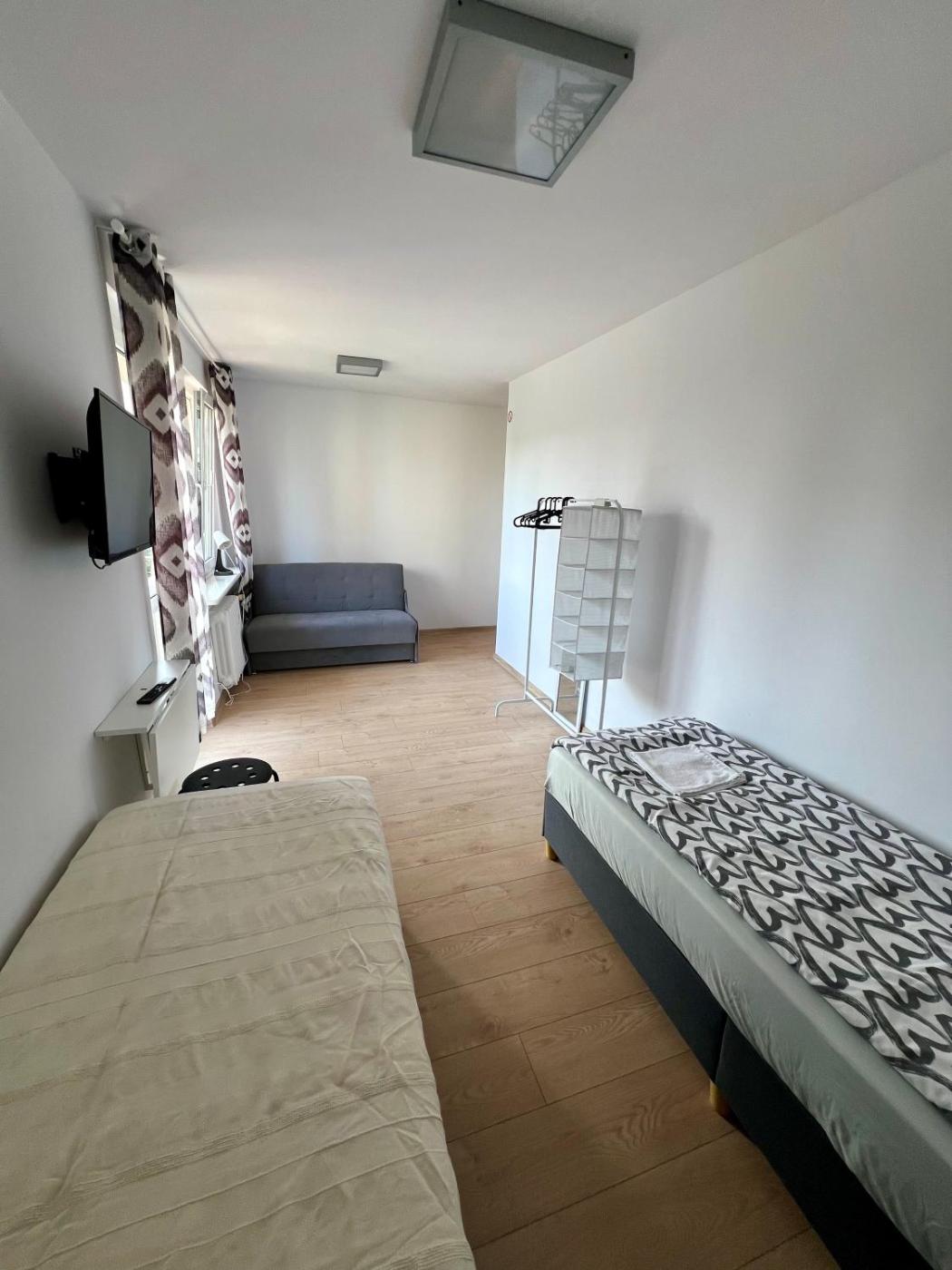 Pokój Trzyosobowy ze wspólną łazienką. In the kitchen, guests will find a stovetop, a refrigerator, kitchenware and an oven. The triple room offers a washing machine, a tea and coffee maker, a dining area, a wardrobe and a flat-screen TV. The unit offers 2 beds. Pokój Trzyosobowy - 3 osobowy. Powierzchnia pokoju ok.: 11 mkw.