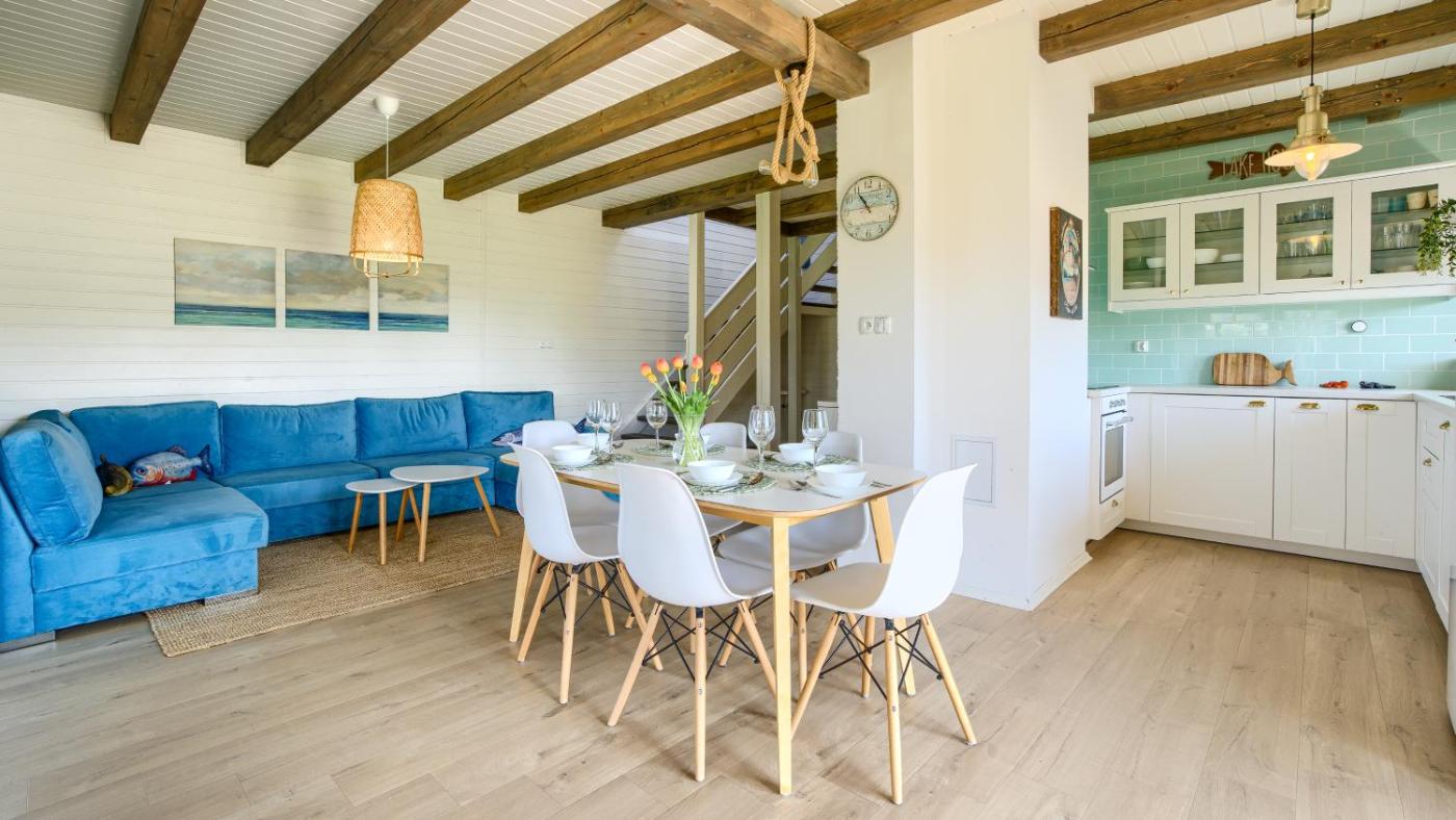 Dom z 3 sypialniami. This holiday homes standout feature is the fireplace. This holiday home is comprised of a kitchenette, a seating area, 3 separate bedrooms and 2 bathrooms with a shower and a hairdryer. Guests will find a stovetop, a refrigerator, a dishwasher and kitchenware in the well-fitted kitchenette. The holiday home also has a barbecue. The holiday home offers a coffee machine, a dining area, a wardrobe, a flat-screen TV with streaming services, as well as garden views. The unit offers 4 beds. Dom wakacyjny - 8 osobowy. Powierzchnia pokoju ok.: 100 mkw.